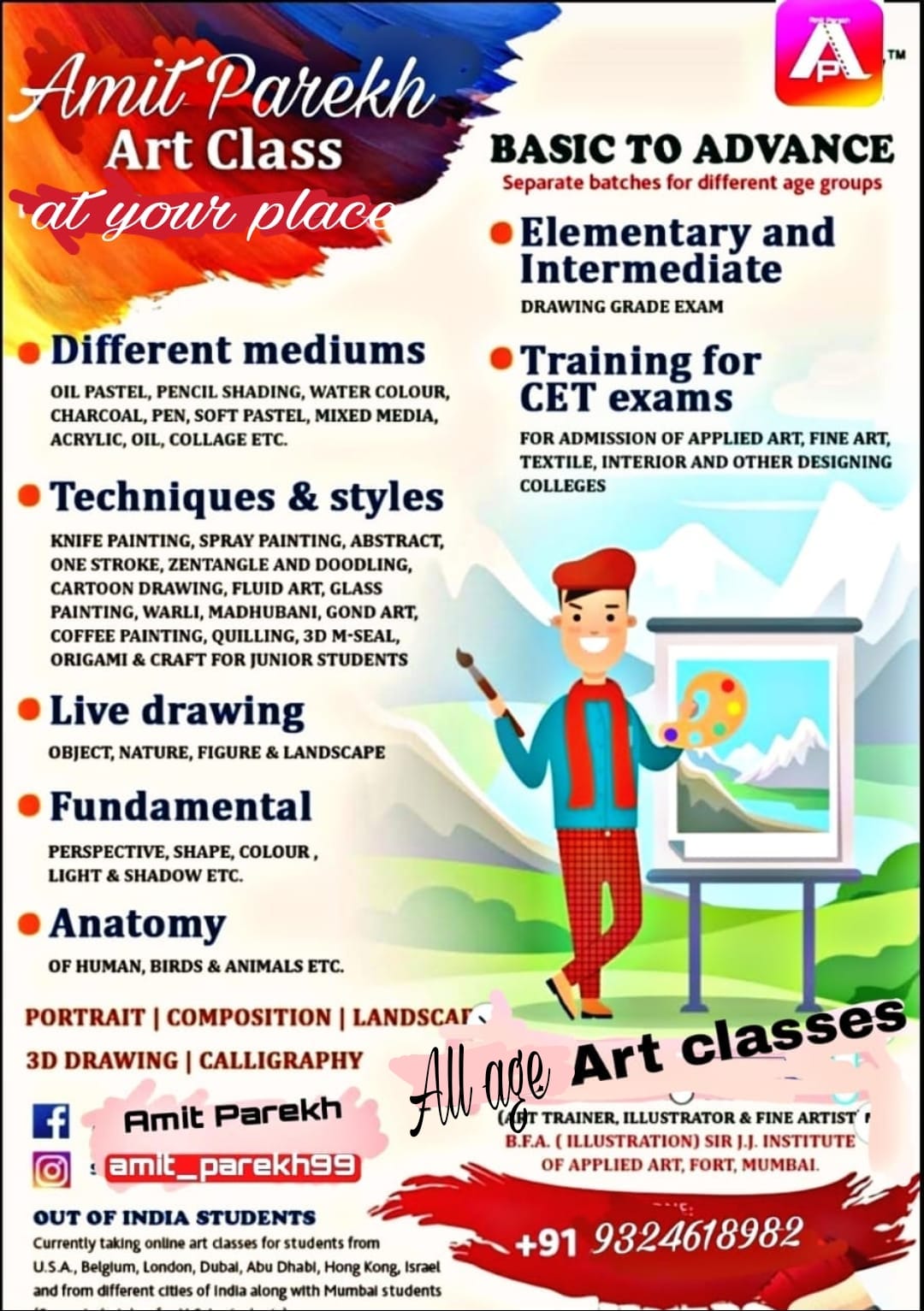 Contact Amit Parekh to choose your preferred art class.